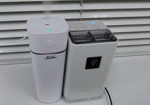 全員がマスク着用の徹底だけではなく、かねてよりインフルエンザ対策として、手洗い・うがいの励行、マスク(女子サイズの小さめ)備蓄、各テーブルでのプラズマクラスター稼働…などを、毎年インフルの季節を中心に行って来ましたが、この度、新たに、加湿器も各テーブルに備えています。